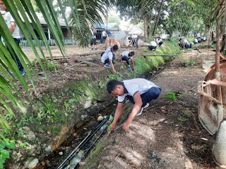 gotong royong ciptakan lingkungan yang bersih dan sehat komplek Rumah dinas (Rumdis) TNI AL di komplek Rumdis Wiratno dan Rumdis Memet Sorong, Distrik Sorong Manoi, Kota Sorong, Prov. Papua Barat Daya. Senin (15/01/2024)