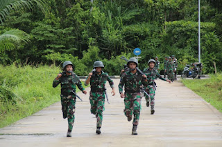 TNI AL, Dispen Kormar Sorong. Prajurit Goura Victoria Resimen Bantuan Tempur 3 Marinir (Menbanpur 3 Mar) laksanakan LPD TW 1 materi Cross Country (CC) jarak tempuh 5 km yang diselenggarakan di kompi C Menbanpur 3 Mar, Majener, Distrik Salawati, Kabupaten Sorong, Papua Barat Daya. Senin (22/01/2024).