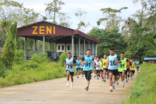 TNI AL, Dispen Kormar Sorong. Prajurit Menbanpur 3 Marinir melaksanakan LPD TW I materi lari 3200 meter yang diselenggarakan di Shelter Yon Zeni Kesatrian Marinir Katapop Abraham Octavianus Atururi, Distrik Salawati, Kab. Sorong, Papua Barat Daya. Rabu (24/01/2024).