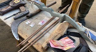 Dari rumah tempat AI tertidur ini juga, ditemukan sepucuk pistol rakitan, dan sejumlah senjata tajam, mulai dari kapak, parang, hingga panah.