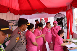 Dalam rangka menyambut Hari Raya Idul Fitri 1445 Hijriah, Ketua Bhayangkari Cabang Kota Medan Ny. dr. Ulivia Teddy Marbun bersama pengurus Bhayangkari Cabang Kota Medan mengunjungi dan memberikan bantuan kepada personel Pos Pam Ketupat Toba 2024 di wilayah hukum Polrestabes Medan.