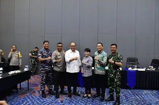 TNI AL, Dispen Kormar Sorong. Komandan Pasmar 3 Brigjen TNI (Mar) Sugianto, S.Sos., M.M., M.Tr.Opsla., menghadiri kunjungan kerja Wakil Menteri Dalam Negeri (Wamendagri) RI John Wempi Wetipo, S.H., M.H., di Stadion Wombik, Km.16, Klablim, Distrik Sorong Timur, Kota Sorong, Papua Barat Daya. Senin (27/05/2024).
