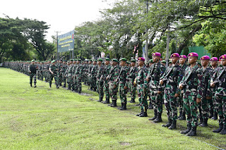 TNI AL, Dispen Kormar Sorong. Komandan Pasmar 3 Brigjen TNI (Mar) Sugianto, S.Sos., M.M., M.Tr.Opsla., menghadiri upacara pelepasan Satuan Tugas Pengamanan Perbatasan (Satgas Pamtas) RI-PNG Kewilayahan Yonif 623/Bhakti Wira Utama (BWU) 2024 bertempat di lapangan apel Mako Yonif 762/VYS, Jl. Basuki Rahmat, Klasaman, Distrik Sorong, Kota Sorong, Papua Barat Daya. Senin (24/06/2024).