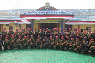 TNI AL, Dispen Kormar Sorong. Dalam rangka memperingat Hari Ulang Tahun (HUT) Bhayangkara ke-78, Prajurit Petarung Pasmar 3 memberikan ucapan selamat berupa “Surprise” dan pemberian Kue Ulang Tahun kepada jajaran Kepolisian Negara Republik Indonesia (Polri) se-Tanah Papua secara serentak pada hari Senin (01/072024).