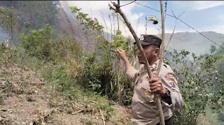 Kapolres Samosir, AKBP Yogie Hardiman, S.H.,S.I.K.,M.H melakukan pengecekan  lokasi kebakaran lahan di Perbukitan Siaraubung, Desa Turpuk Limbong, Kecamatan Harian, Kabupaten Samosir. (16/07/2024)