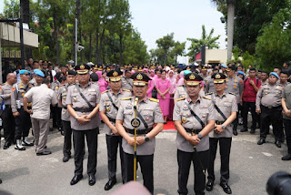 Mantan Kapolda Sumut tersebut dilepas penggantinya, Irjen Pol Whisnu Hermawan Februanto dan Waka Polda Sumut, Brigjen Pol Rony Samtana serta para PJU hingga Kapolres jajaran ke gerbang III pintu keluar Mapoldasu.