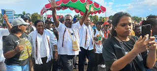 Sorong: mhp.com pbd..Deklarasi.. para pendukung dan relawan siap memenangkan pasangan bakal Calon Gubernur Papua Barat Daya Bapak Elisa Kambu.S.sos dengan wakil Gubernur Papua Barat Daya Bapak Ahmad Nausrau.S.pd.l.mm (Elkam) yang diusung dari Partai Gerindra PAN dan PKB Di jln.klamono Alun-alun Aimas kabupaten sorong, Deklarasi berjalan dengan baik dan sukses dan pihak keamanan dari polres sorong ,walaupun suasana diguyur hujan para pendukung Elkam Center tetap setia walaupun hujan siap untuk memberi dukungan bakal Calon Gubernur dan wakil Gubernur Elkam.