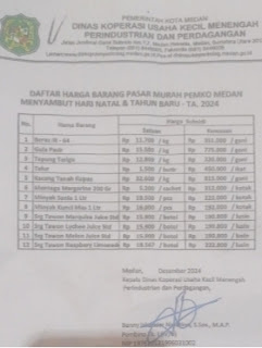 Kepala dinas Kepala Dinas Koperasi UKM, Perindustrian, dan Perdagangan Kota Medan, Benny Iskandar Nasution, S.Sos., M.A.P saat dikonfirmasi wartawan terkejut dan mengatakan bahwa harga resmi sembako yang dikeluarkan sudah ada. Benny Iskandar menegaskan akan segera menindaklanjuti temuan warga tersebut tandasnya.