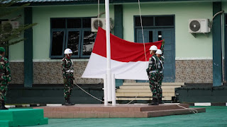Danrem 181/PVT Brigjen TNI Totok Sutriono, S.Sos.,M.M., memimpin upacara Bendera Tujuh Belasan Bulan Februari Tahun 2025 bertempat di Lapangan Korem 181/PVT, Jalan Pramuka No.1 Kelurahan Malamso Distrik Malaisimsa, Kota Sorong Provinsi Papua Barat Daya, Senin, (17/02/2025).
