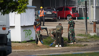 Pembersihan dipimpin langsung oleh Mayor Inf Dr. Triyana, S.Pdi., M.Pdi., bersama anggota Korem 181/PVT, yang turun langsung ke lapangan untuk memastikan lingkungan tetap bersih dan sehat.
