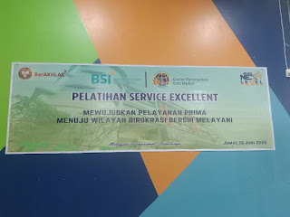 Dalam acara Service Excellent  Kementerian ATR / BPN Kantor Pertanahan Kota Medan  berkolaborasi dengan BSI untuk mewujudkan pelayanan prima yang aman dan nyaman bagi masyarakat yang datang  mengurus tanah. pelatihan  service  excellent topik  yang di berikan oleh Bank BSI ini adalah yang baik buat pegawai ATR / BPN untuk mewujudkan pelayanan yang ramah, nyaman dan memberikan solusi bagi masyarakat yg datang ke Kantor Pertanahan Kota Medan.