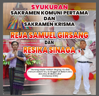 Acara resepsi pengucapan syukur didalam gereja katholik yang diadakan di kediaman keluarga Bapak J .girsang ibu R . Sinaga . Anak kami yang ke. Il Reja Samuel Girsang telah menerima komuni pertama dan Resika sinaga juga telah menerima Sakramen Krisma dari Bapak Uskup Mgr Hilarion Datus Lega Uskup Manokwari Sorong .