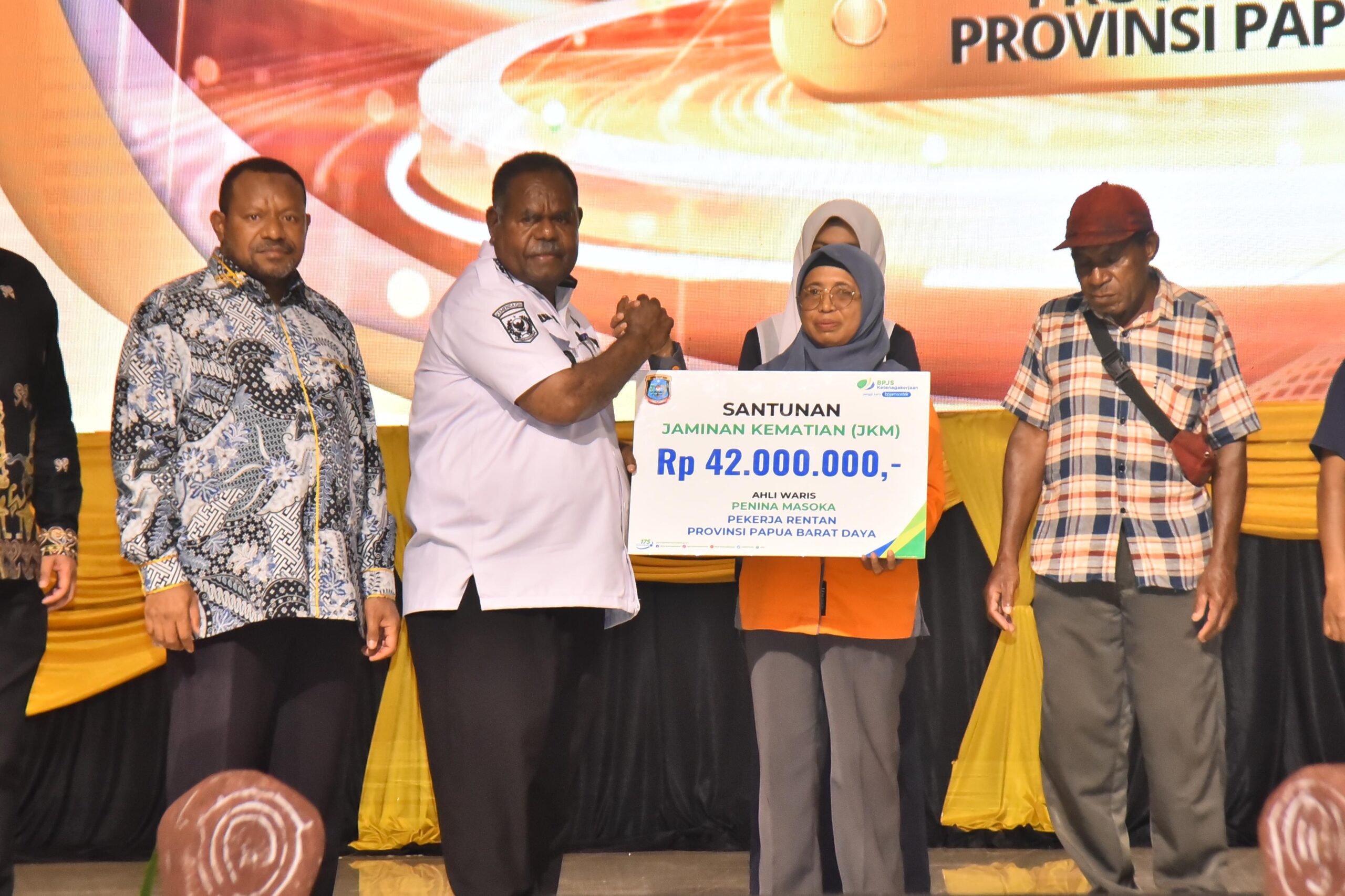 Acara penganugerahan ditandai dengan penabuhan tifa secara simbolis, penyerahan piagam penghargaan dari BPJS Ketenagakerjaan kepada Pemerintah Provinsi Papua Barat, serta penyerahan santunan jaminan kematian (JKM), jaminan hari tua (JHT), jaminan pensiun (JP), dan program beasiswa. Rangkaian kegiatan diakhiri dengan sesi foto bersama seluruh peserta dan tamu undangan.