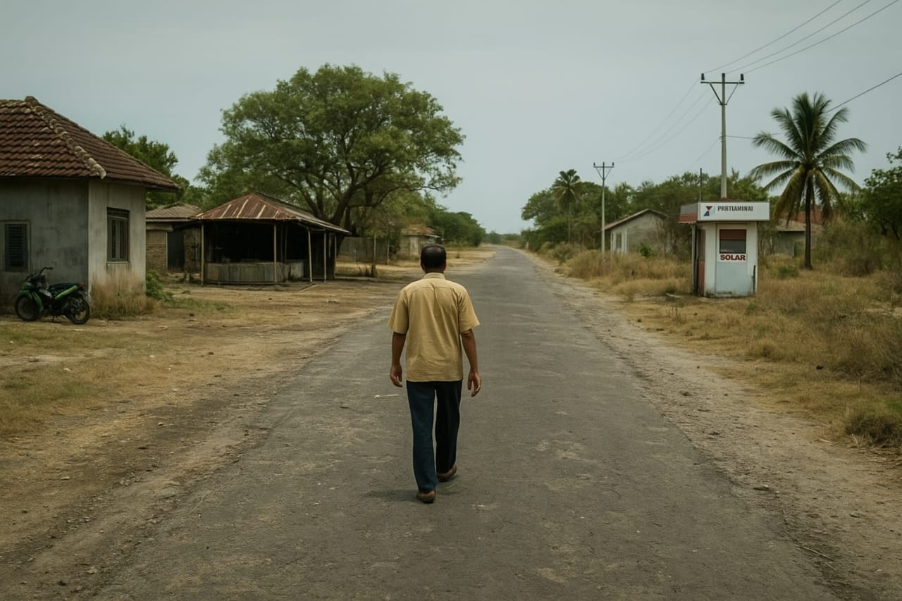 Guru berjalan kaki ke sekolah dengan keringat bercucuran. Nelayan menatap laut sambil menggenggam jaring kosong, solar hanya tinggal cerita. Petani hanya bisa menghela napas melihat hasil panen menumpuk, tak ada bahan bakar untuk mengangkutnya.