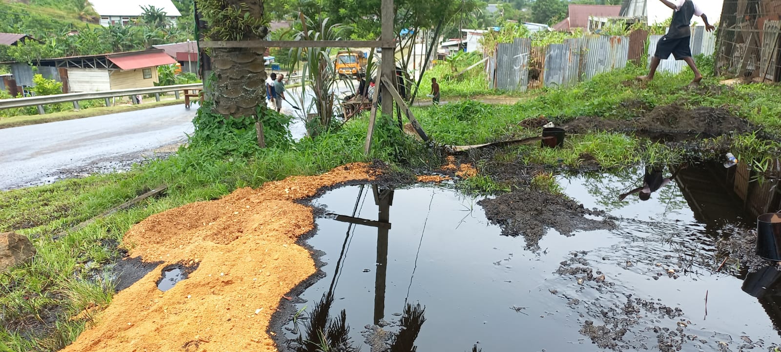 — Wow Insiden serius terjadi di Jalan Sorong–Klamono KM 17 pada Selasa, 19 November 2025. Pipa Pertamina diduga mengalami kebocoran dan mengeluarkan tumpahan minyak mentah berwarna hitam sejak pagi pukul 08.00 WIT. Hingga menjelang siang, tidak ada satu pun petugas Pertamina terlihat melakukan penutupan aliran, pengamanan lokasi, atau tindakan darurat lainnya.