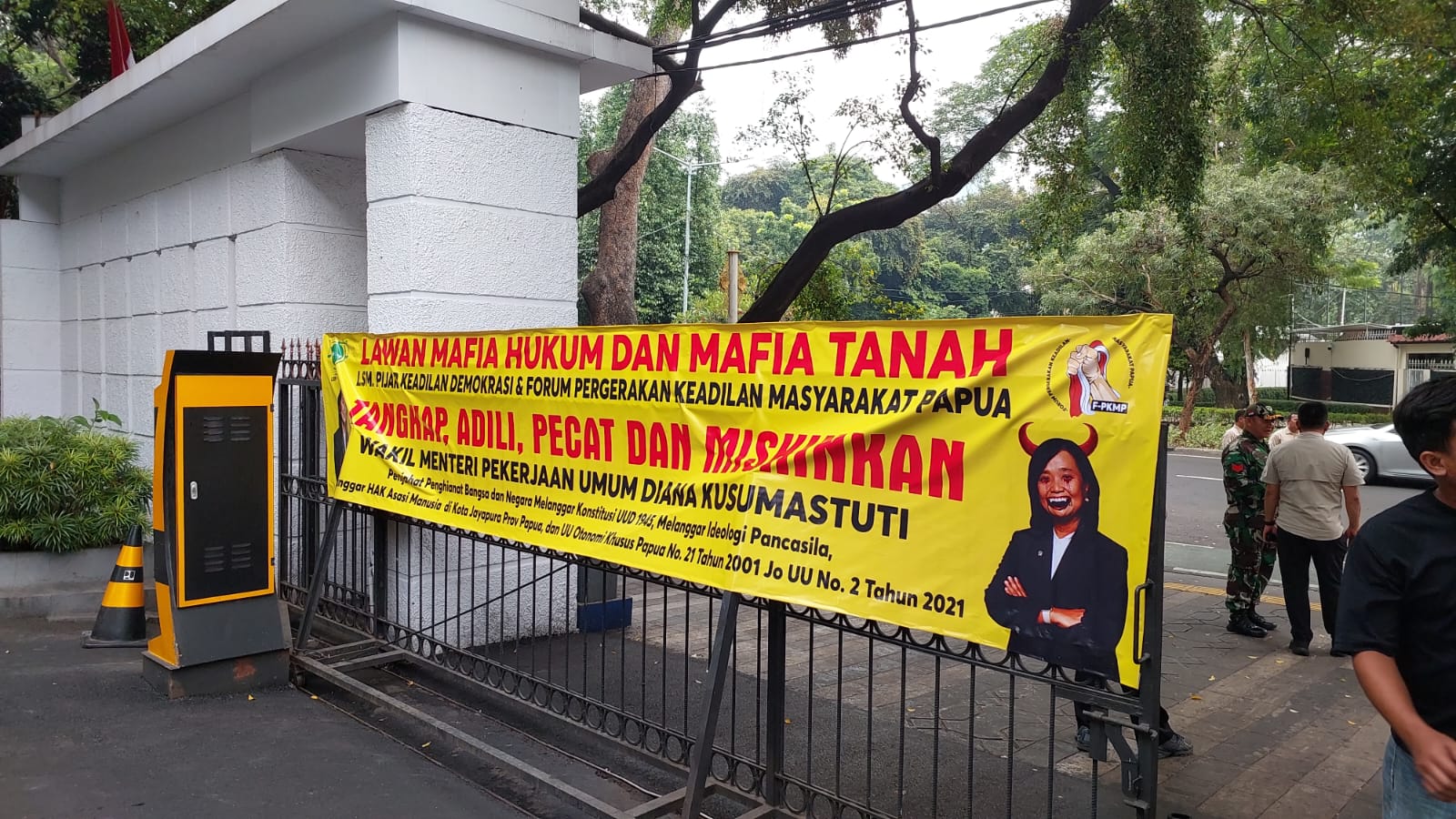 Aksi yang berlangsung pada Kamis (4/12) ini menyoroti dugaan praktik mafia tanah, pelanggaran hak ulayat, dan pelanggaran HAM yang merugikan masyarakat adat Papua yang diduga dilakukan oleh Direktorat Jenderal Cipta Karya Kementerian PU pada tahun 2021 yang saat itu dipimpin oleh Diana Kusumastuti dan sekarang menjabat sebagai Wakil Menteri PU.