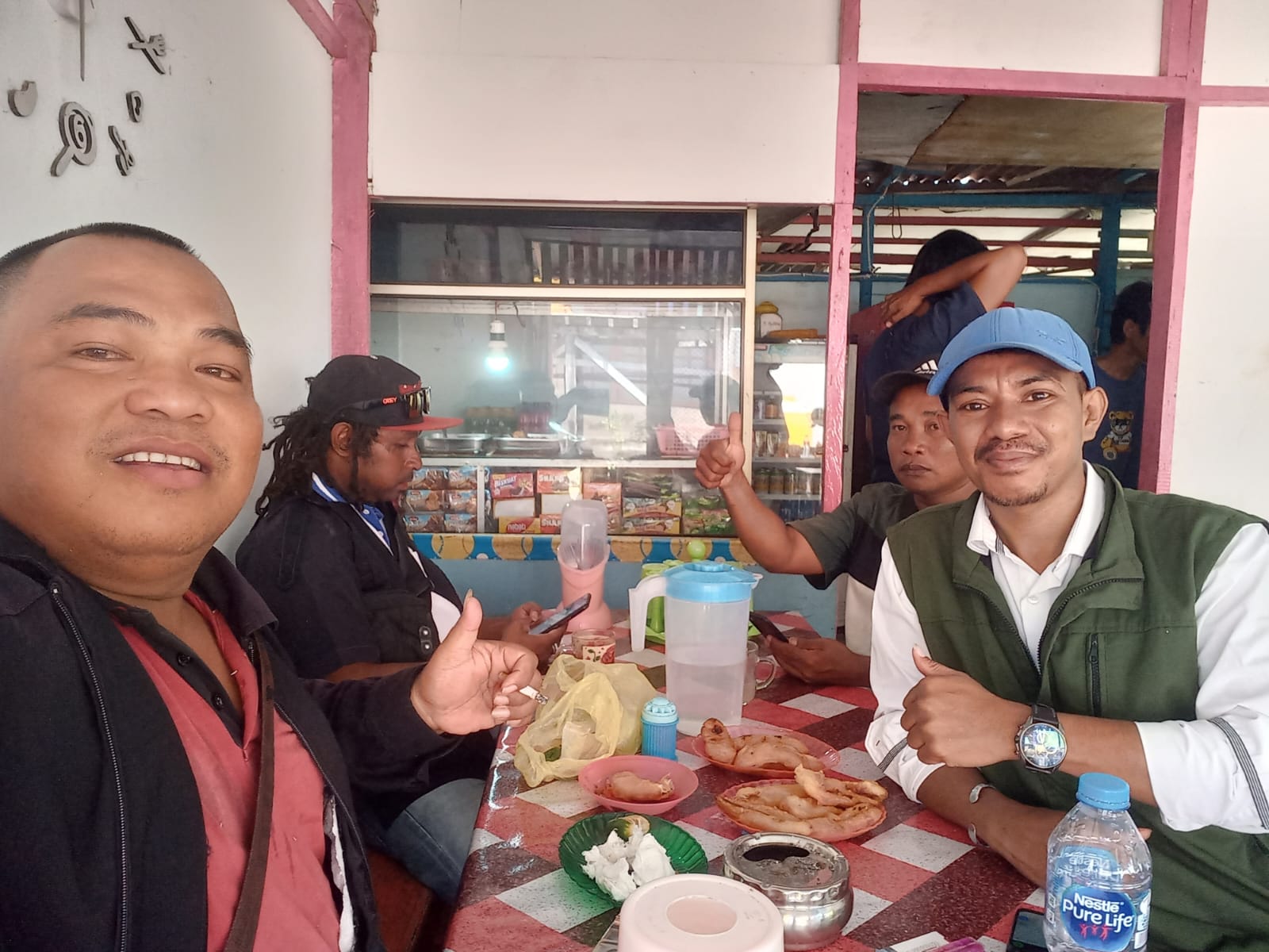 Kegiatan para awak media lagi duduk duduk di kantin kantor pengadilan Negeri Sorong untuk ketemu dengan Kepala pengadilan Negeri Sorong Ym Beauty D .E Simatauw S.H M.H jalin bersiraturahmi.
