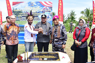 Pj Gubernur Di dampingi Komandan Pasmar Papua Barat Daya Resmikan Kampung Bahari Nusantara Di Kampung Yeflio