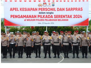 Kapolres Pelabuhan Belawan Pimpin Apel Pengecekan Kesiapan Pengamanan Pilkada Serentak 2024
