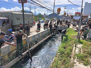 Peduli Kebersihan Lingkungan, Prajurit Marinir Laksanakan Bhakti Sosial