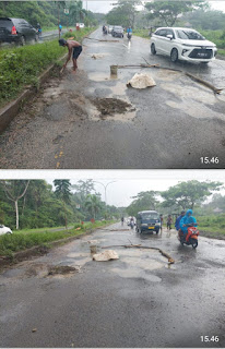 Warga Ambil Inisiatif Tutup Jalan Yang Berlubang