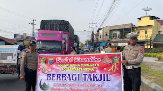 Jelang Berbuka Puasa, Polsek Tuntungan Bagi – bagi Takjil Ke Pengendara