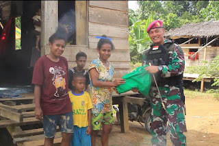 Danyonif 11 Mar Memberikan Bansos Sembako Kepada Masyarakat Di Sela Latihan